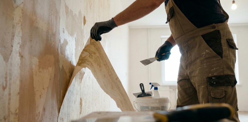 - Sauberes Tapeten entfernen für frische Wände.