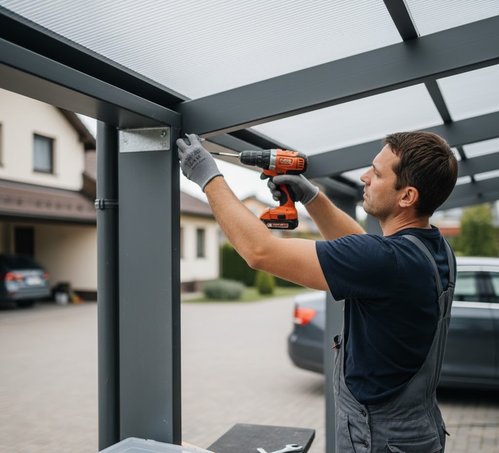 Stabiler Aufbau von Carports als geschützter Stellplatz für Ihr Fahrzeug.